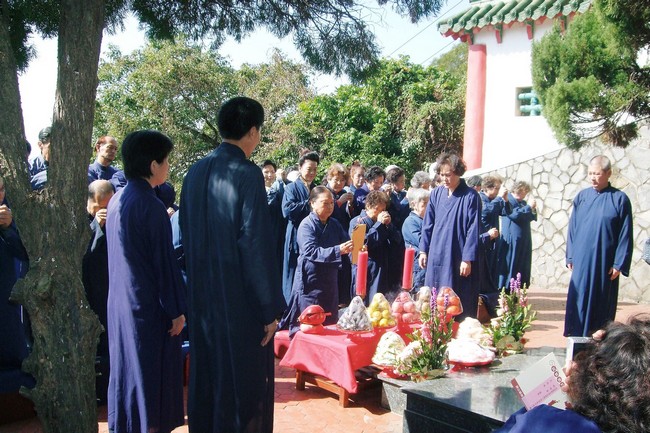 另一次是和秦老師去掃墓,不經意抬頭望向天空,看見一道直線形的彩光,道友連忙喊秦老師快看,據秦老師說,先師站在彩光頂端,揮手要我們趕緊回去,因為快要下大雨了,果然才下山到一半,天就降雨了。還有一次,幾位道友自行去山上掃墓,卻在墳前唸誦解冤往生經,一時狂風大作,後來 先師便親自吩咐秦老師,在戶外沒有神佛護佑的地方,萬萬不可誦經。